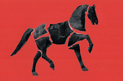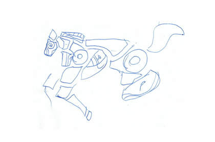 Původní idea bylo udělat jednotlivé části koně jako části nástrojů a z kovboje pana Byčkova. Ten kočíruje koně, a tedy orchestr. Při skicování od nástrojů upouštím. Kůň bude ve svých částech vyjadřovat 9 měst, která filharmonie navštívila.
