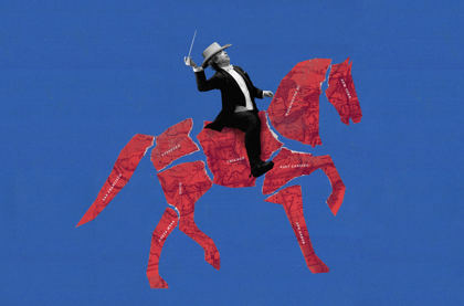 Pro ilustraci nakonec volím jednu dostatečně majestátní. Nebyl to záměr, ale jde o ruského revolucionáře. Ve finální kompozici to nikdo nepozná, ale odkaz na kořeny dirigenta mi přijde jako vtipná náhoda.